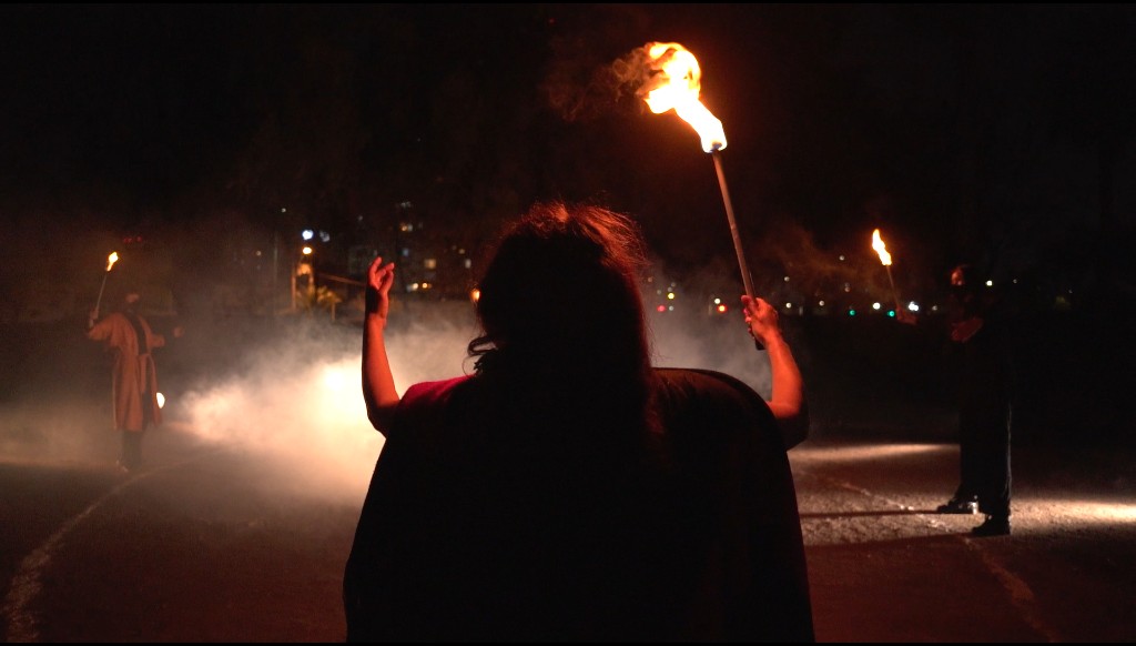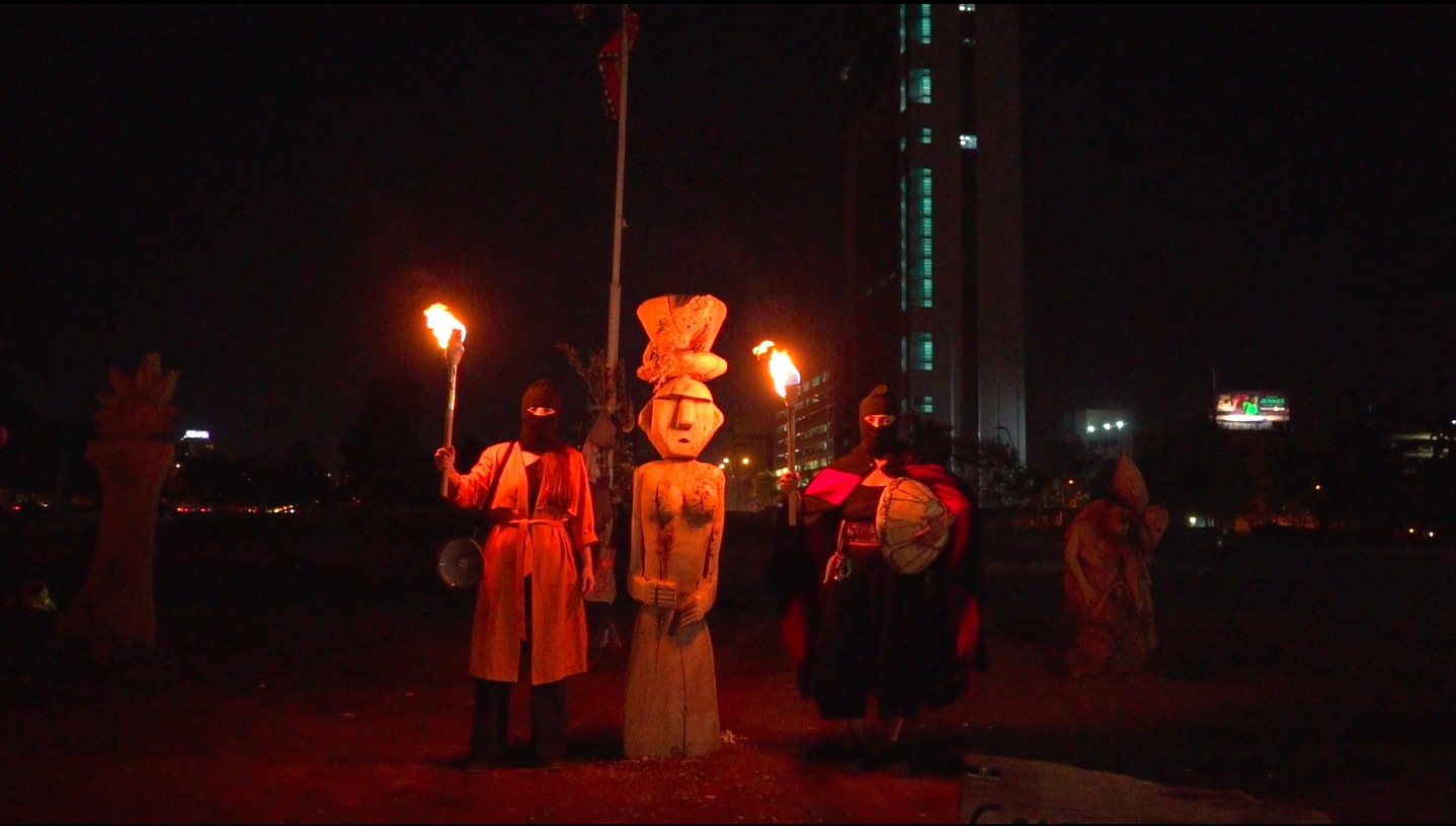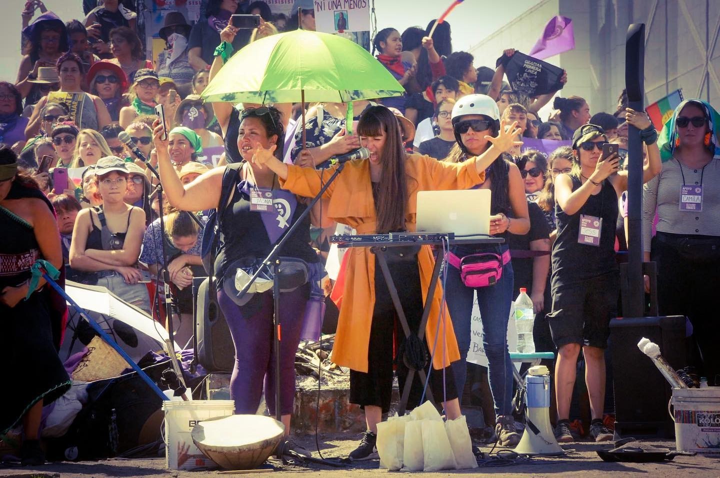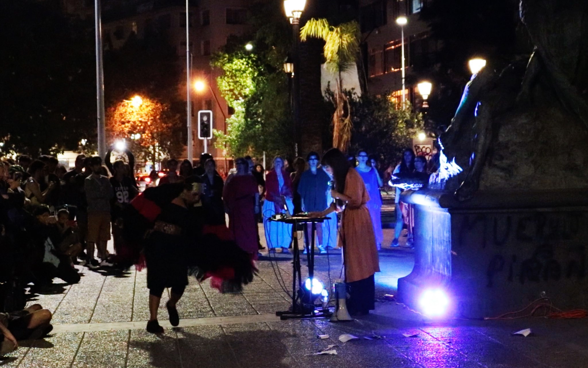 De este trabajo se impulsa la creación de un espectáculo interdisciplinario, obra y puesta en escena colectiva multidisciplinar (Rito), que fusiona lo sonoro musical y performático, interviniendo espacios públicos significativos social y políticamente, con un elenco intergeneracionales de mujeres performers, música en vivo, que mezcla discursos y cánticos emblemáticos del movimiento mundial feminista y medioambiental, un llamado de lucha en defensa de la madre tierra, los DDHH y los pueblos originarios.