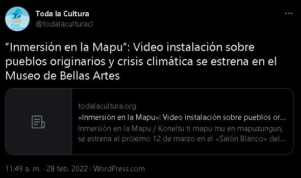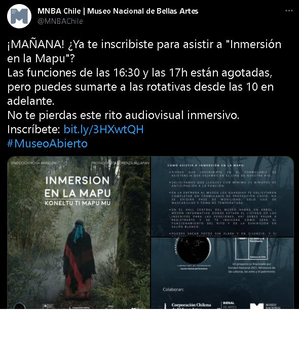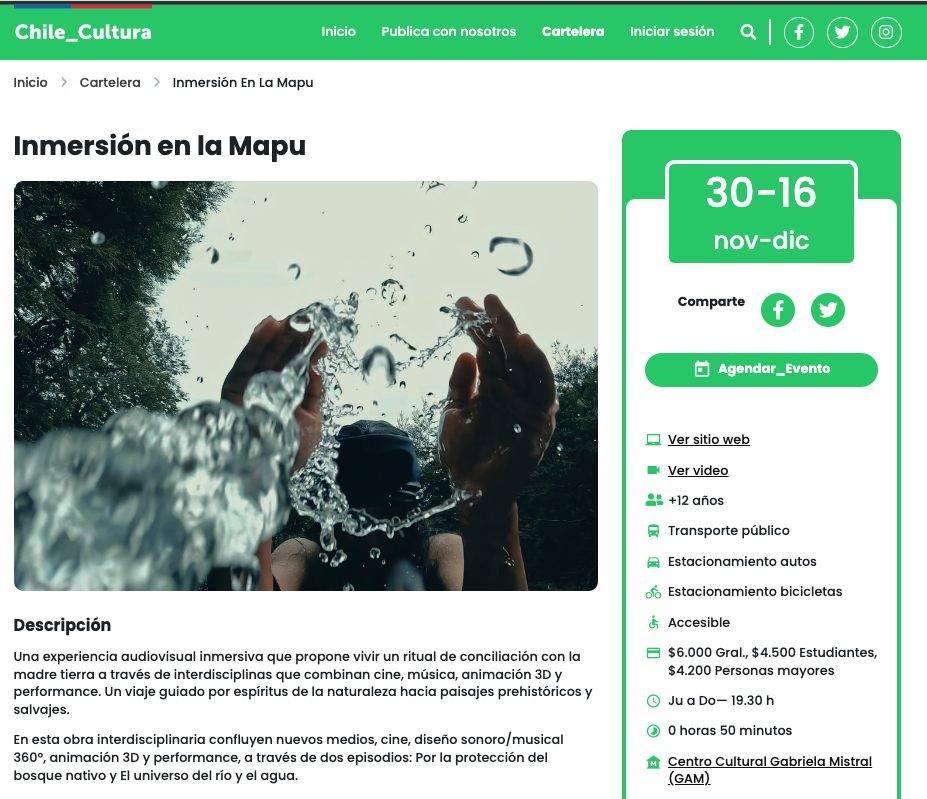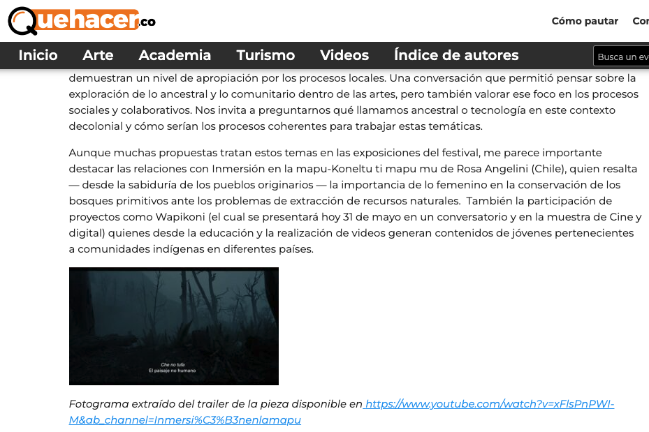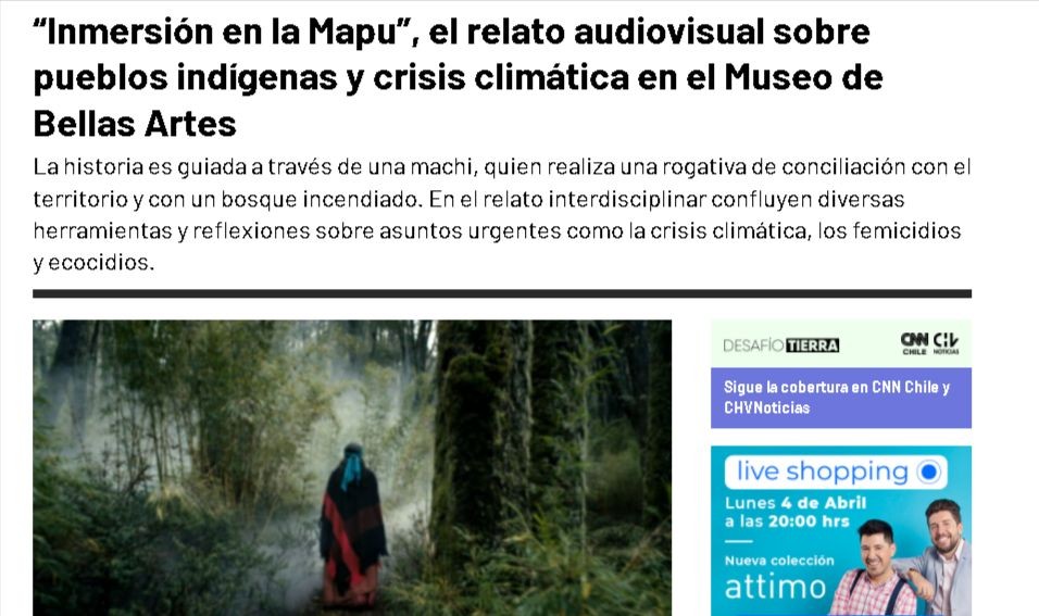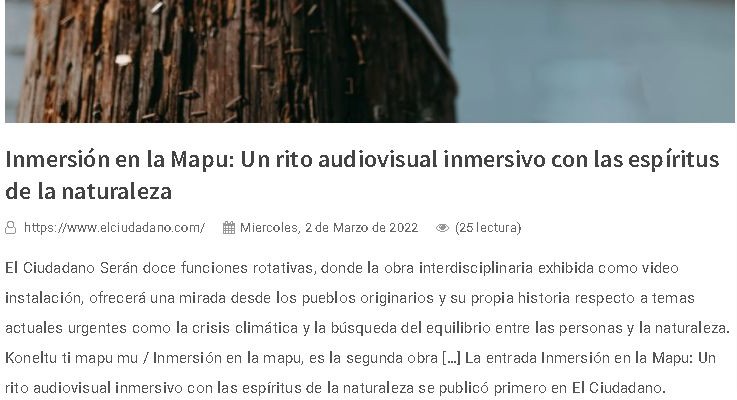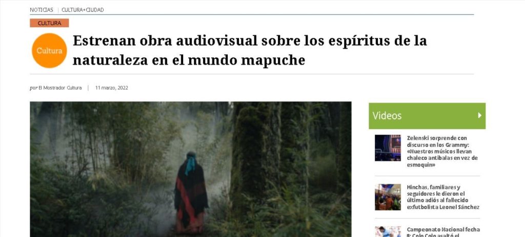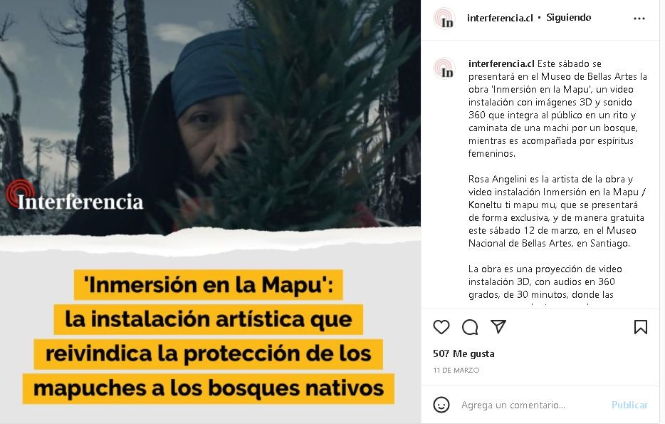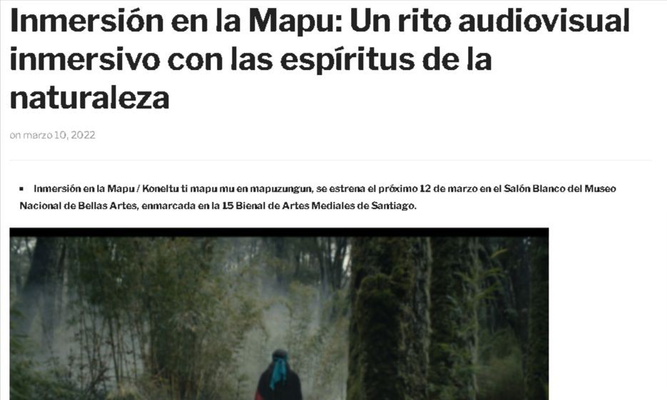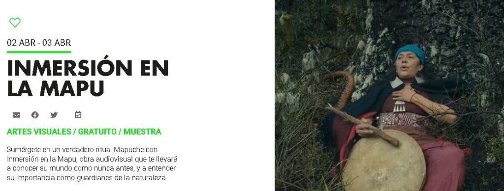 Inmersión en la mapu, seleccionada para muestra Xenopaisajes en Colombia, representando a Chile. Dirac, gobierno de Chile