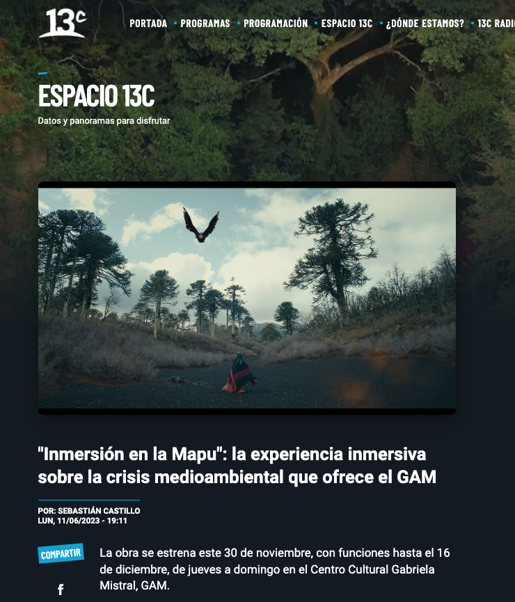 Espacio 13C - "Inmersión en la Mapu": la experiencia inmersiva sobre la crisis medioambiental en GAM 2023